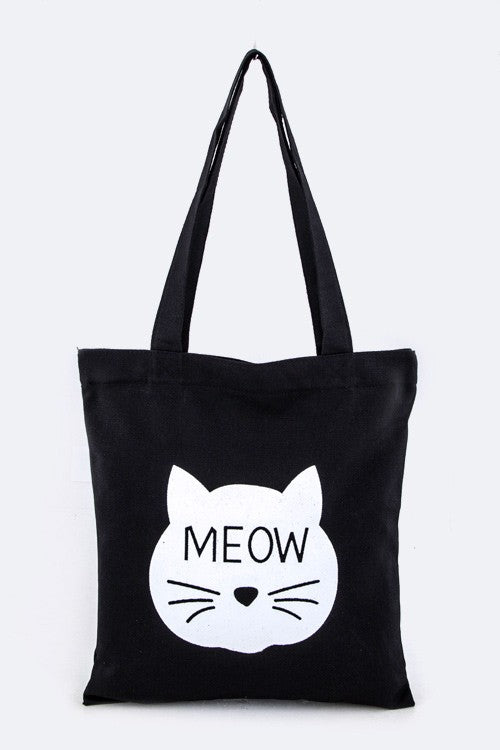 Meow Cat Print Cotton Canvas Tote