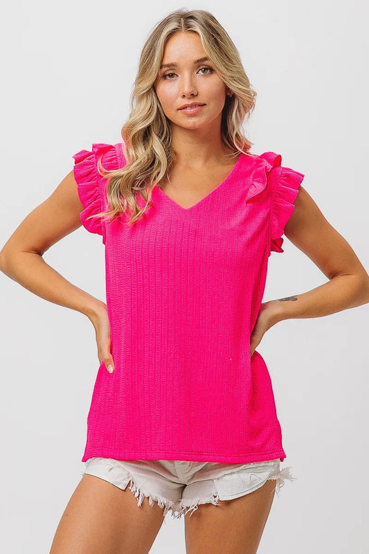 Stacy Layered Ruffles V-neck Rib Textured Top